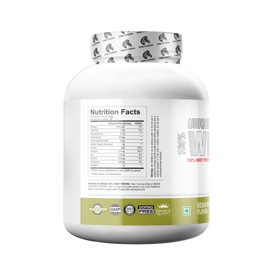 • Zebra Nutrition WHEY PROTEIN is 100% Imported Whey Protein Isolate supplement powder and delivers 28.11g of protein per 33g serving size.